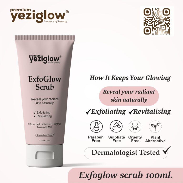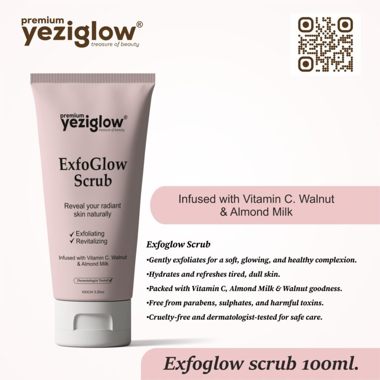 ExfoGlow Scrub is a gentle exfoliating face scrub crafted with the goodness of Vitamin C, walnut granules, and almond milk. It’s designed to remove dead skin cells and impurities while leaving your skin smooth, nourished, and naturally glowing.How It Is