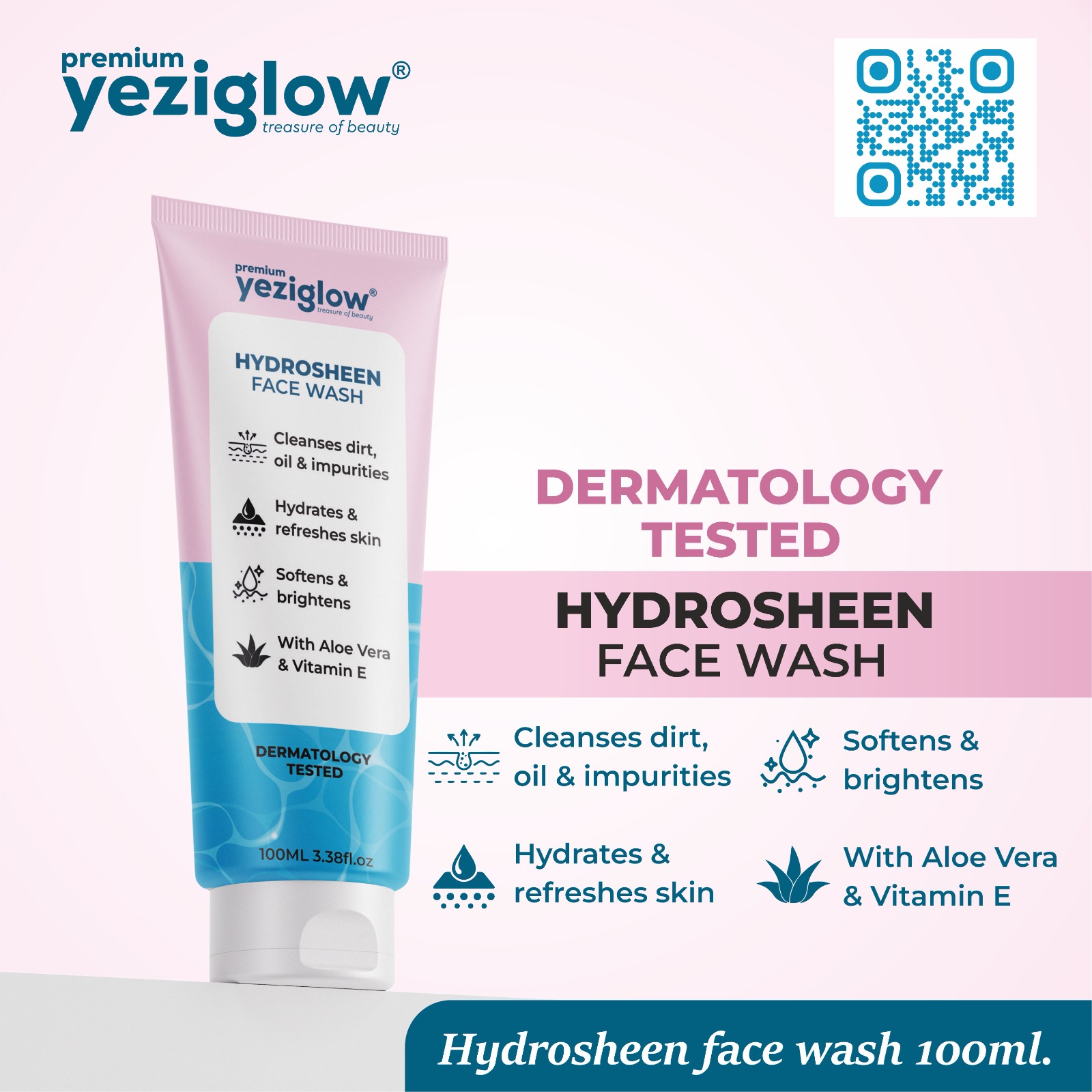 Hydrosheen Face Wash is a gentle, hydrating cleanser enriched with Aloe Vera and Vitamin E. It deeply cleanses the skin, removes impurities, and keeps it soft, fresh, and naturally glowing every day.