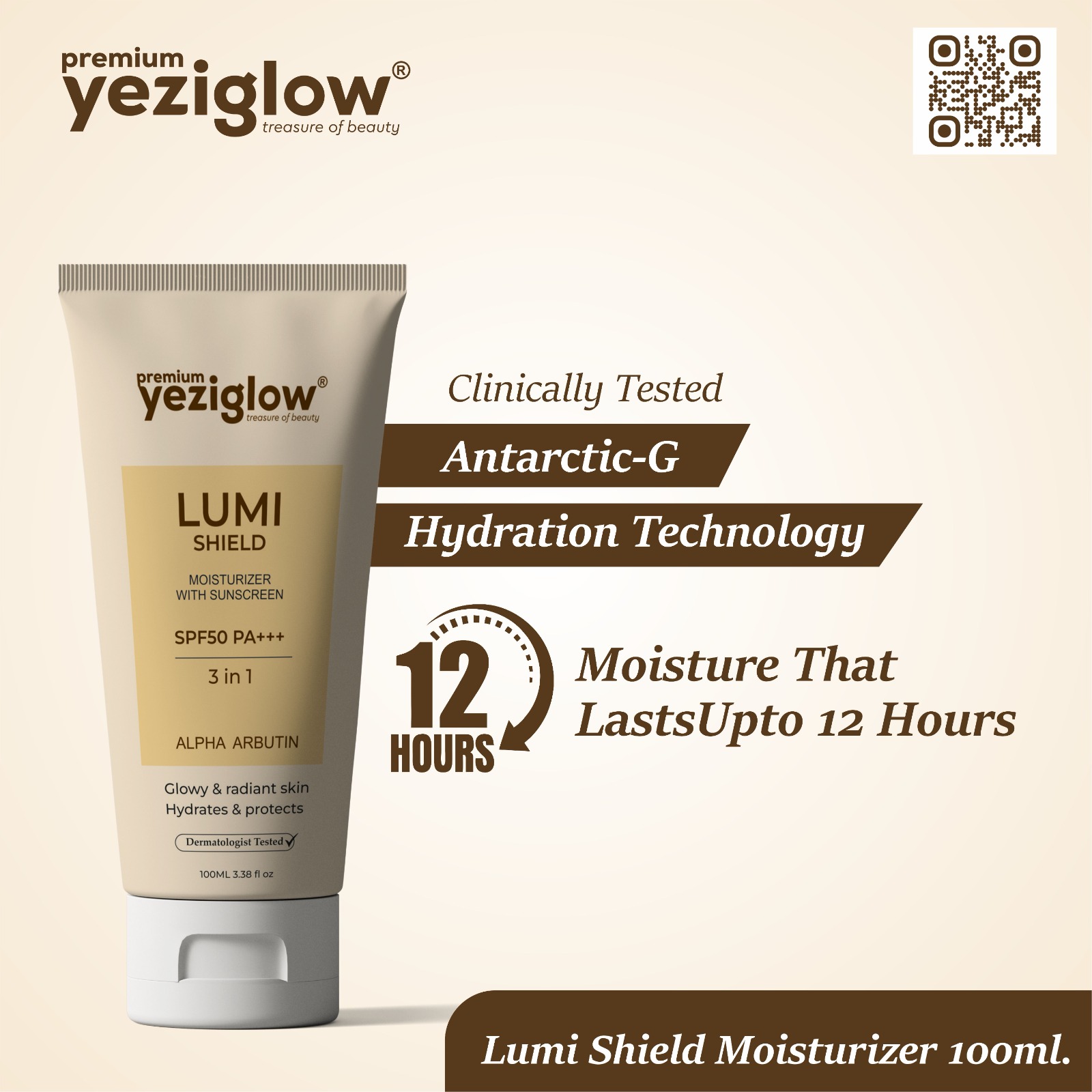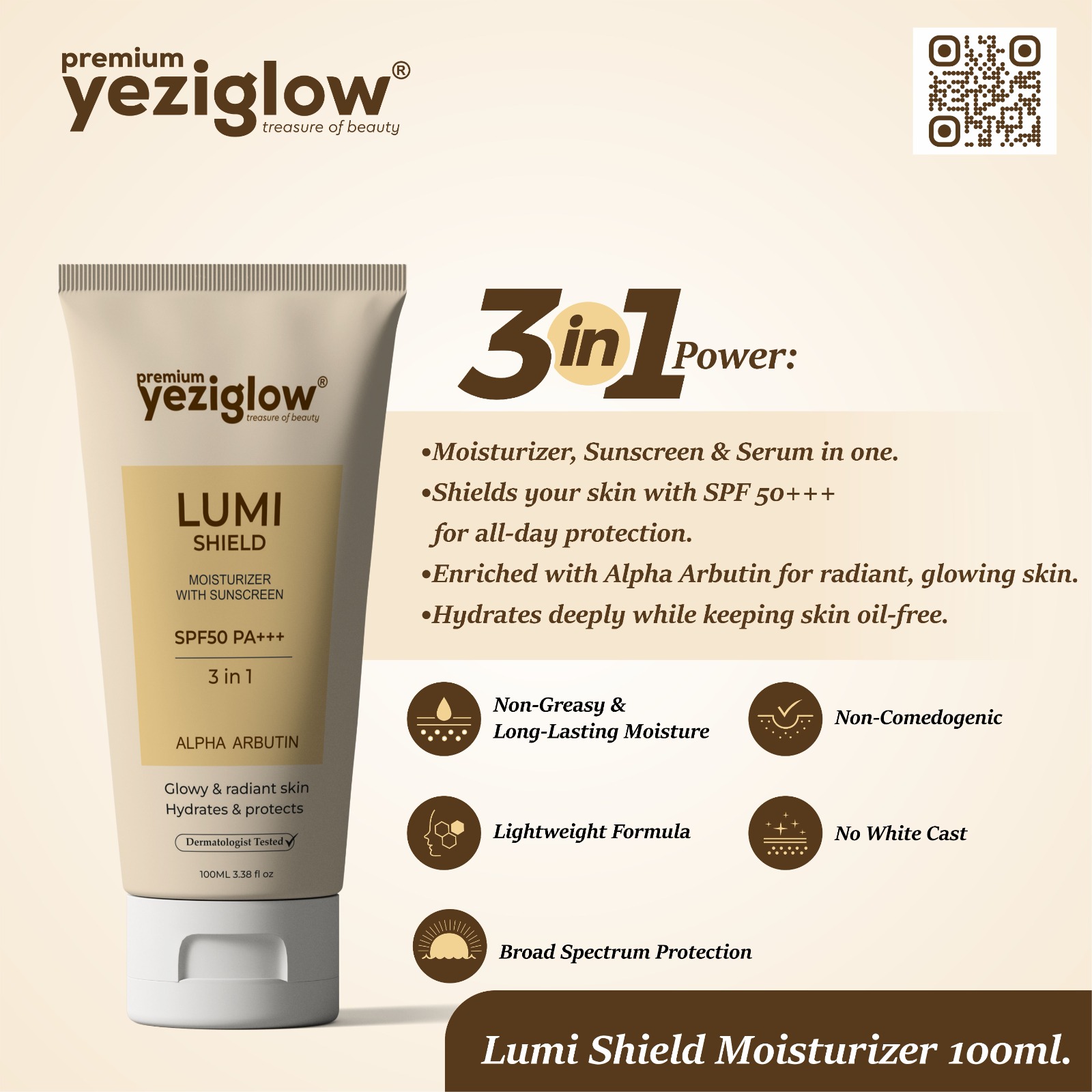 Lumi Shield 3-in-1 is an advanced Sunscreen, Moisturizer, and Brightening Shield—all in one luxurious formula.